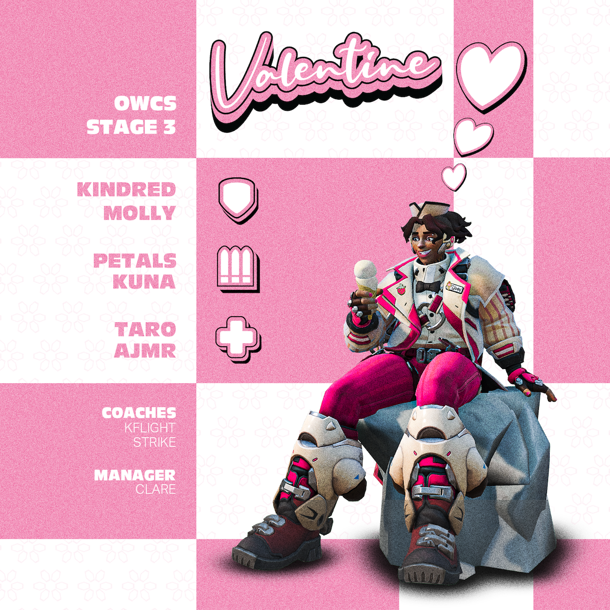 As the graphic designer for Valentine, an esports organization based in Overwatch, I created dynamic graphics for social media that promoted the teams activity and participation in Overwatch esports.